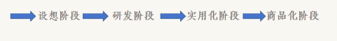 按照一般的技术创新观点,科技成果转化包括四个阶段:设想阶段(基础研究、应用研究)、研发阶段(小试、中试)、实用化阶段(进入到企业)、商品化阶段。
